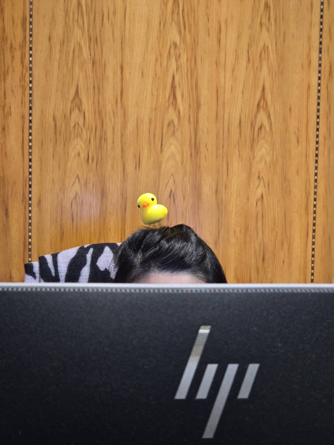 萬聖節,她從早上就戴著那隻小鴨在我面前晃了。